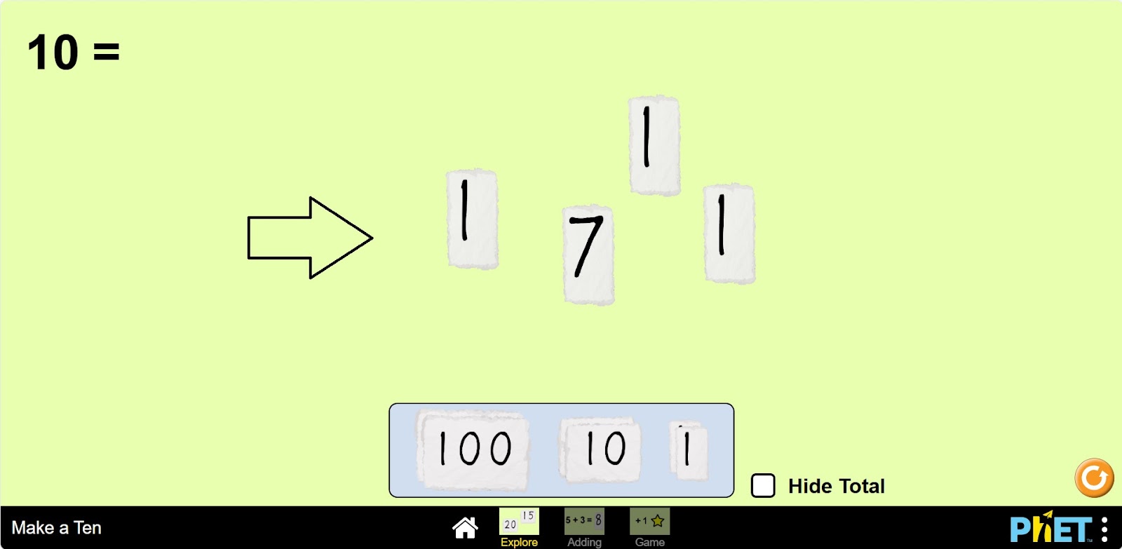 Make a Ten by PhET Interactive Simulations, University of Colorado Boulder, licensed under CC-BY-4.0 (https://phet.colorado.edu)