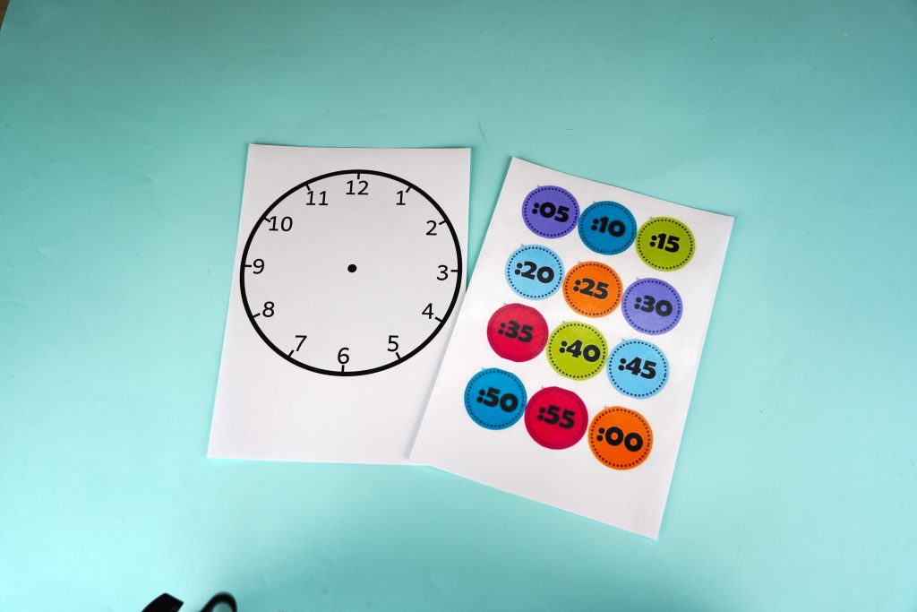 2. Сағат пішінін және минуттар көрсетілген қағазды А4 қатты қағаздарға басып шығарыңыз. Сілтеме арқылы жүктеп алыңыз: сағат және минут