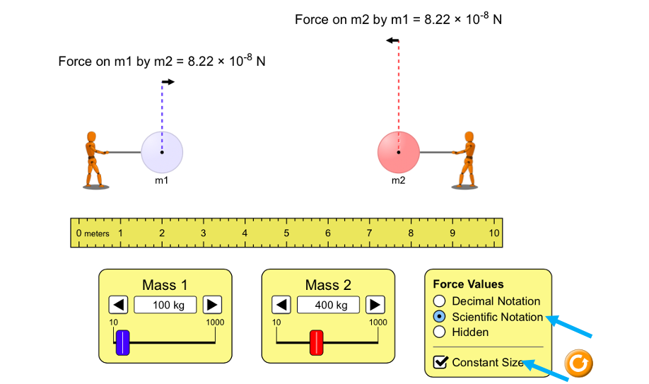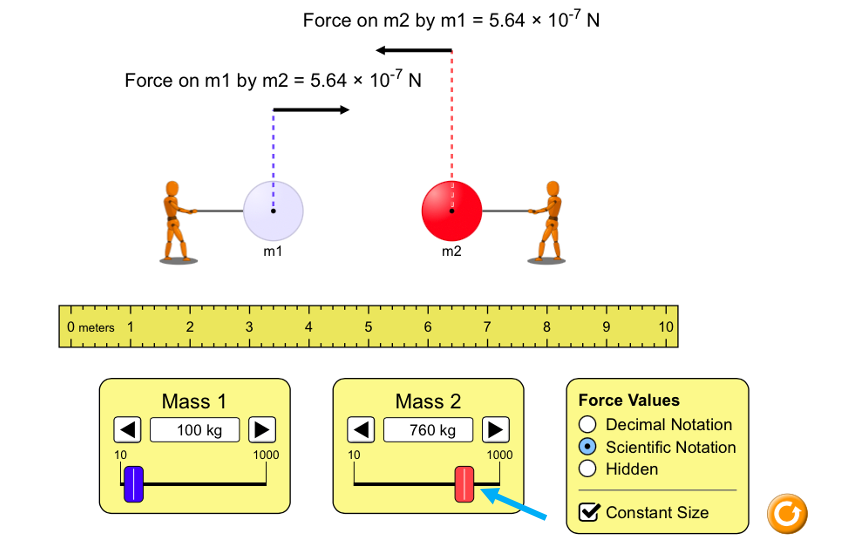 Gravity Force Lab by PhET Interactive Simulations, University of Colorado Boulder, licensed under CC-BY-4.0 (https://phet.colorado.edu)