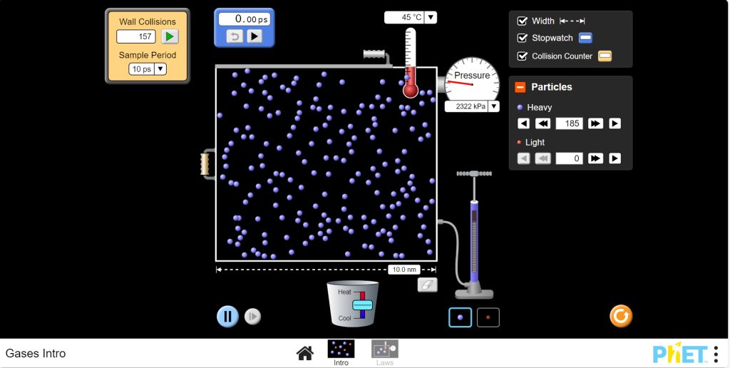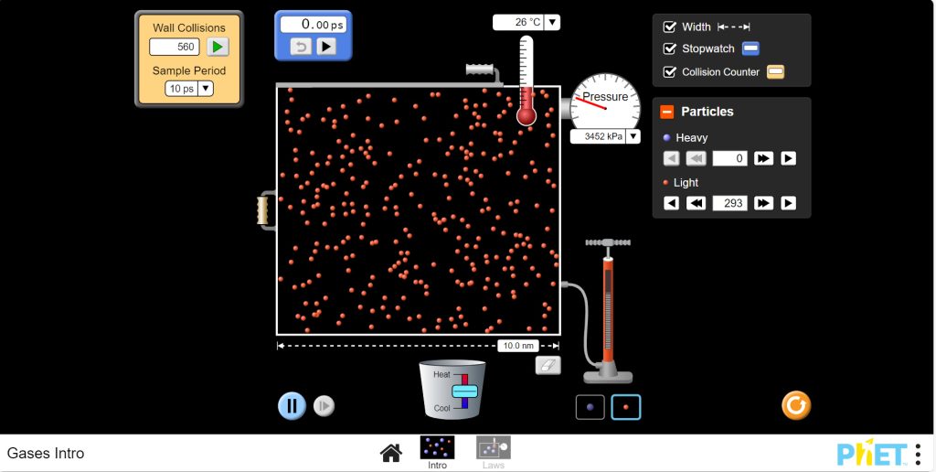 Gases Intro by PhET Interactive Simulations, University of Colorado Boulder, licensed under CC-BY-4.0 (https://phet.colorado.edu)